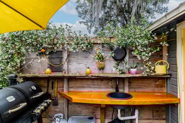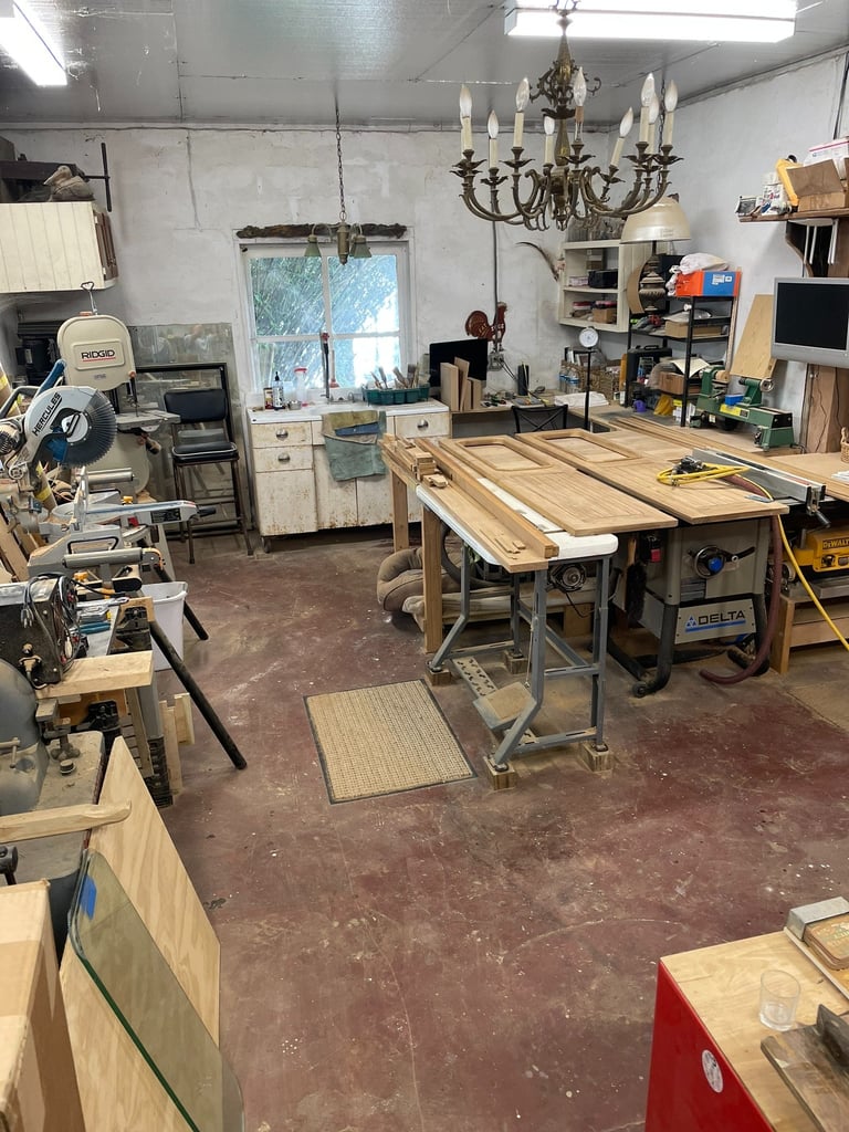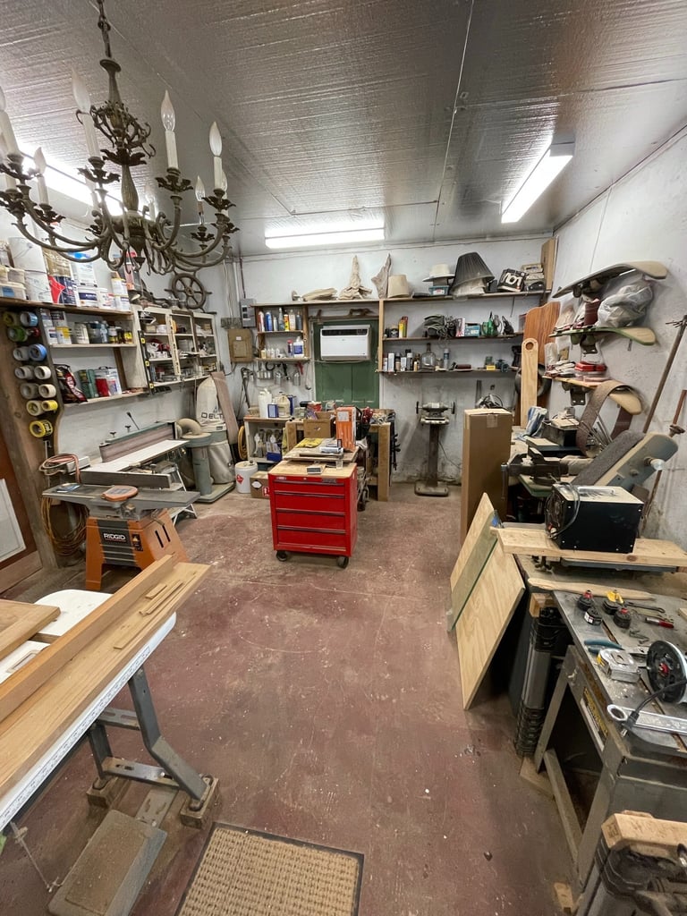 40' X 30', well-lit & air-conditioned block building complete with 10” table saw, 12” miter saw, band saw, drill press, shaper, edge sander, belt sander, two grinder polishers, compressor and dust system. Room for toys.