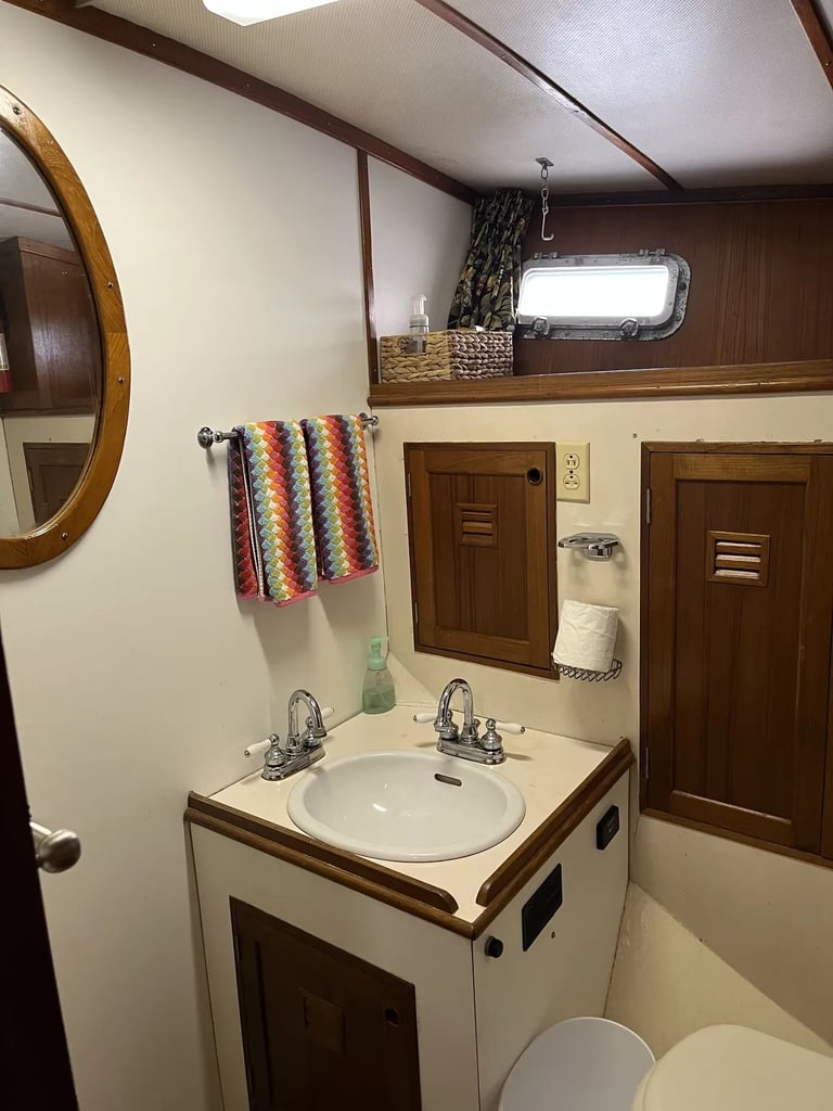 Accessories and equipment includes AC, Starlink, new settee, new canvas aft deck enclosure with AC, exotic wood finishes, new victron inverter and batteries, and diesel generator for reliable power at anchor or underway. Reliable twin 120 Ford Lehman marine diesels yield a cruising speed of 7.5 - 8.0 knots at just over 4 gallons per hour at 1750 RPM, giving "Shangri La" a cruising range of over 1,500 nautical miles.