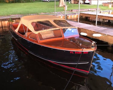Beautiful 1958 Lyman - 18' Islander launch, all original - well kept, nice wood work, seating for 8, recent Sunbrella cushions with piping, carpet and oriental rug. Side steering both center and front.