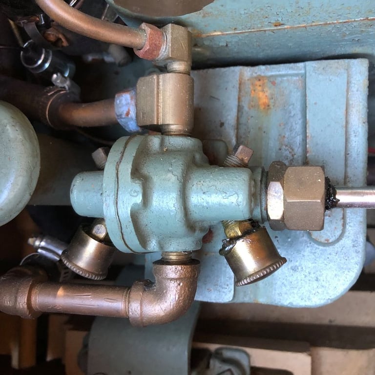 Recent bottom paint. 31HP gray marine four cylinder, completely rebuilt 400 hours ago - cruises 5 to 8 knots