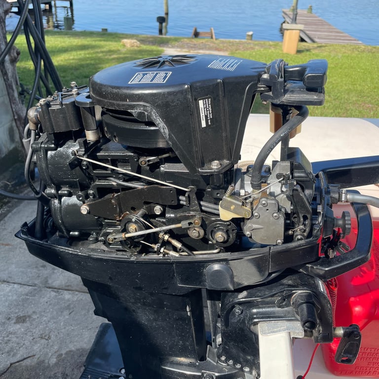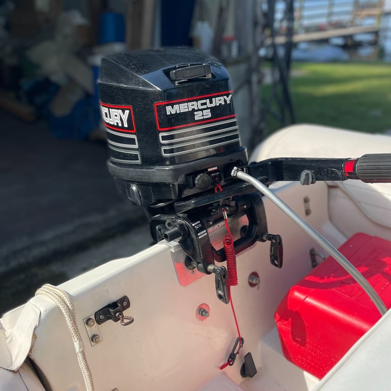 Has mercury 25hp, two stroke with rare single twist grip shift.