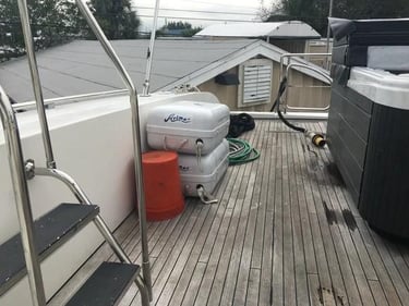 Fuel, Fresh water, Blackwater tanks scrubbed and cleaned